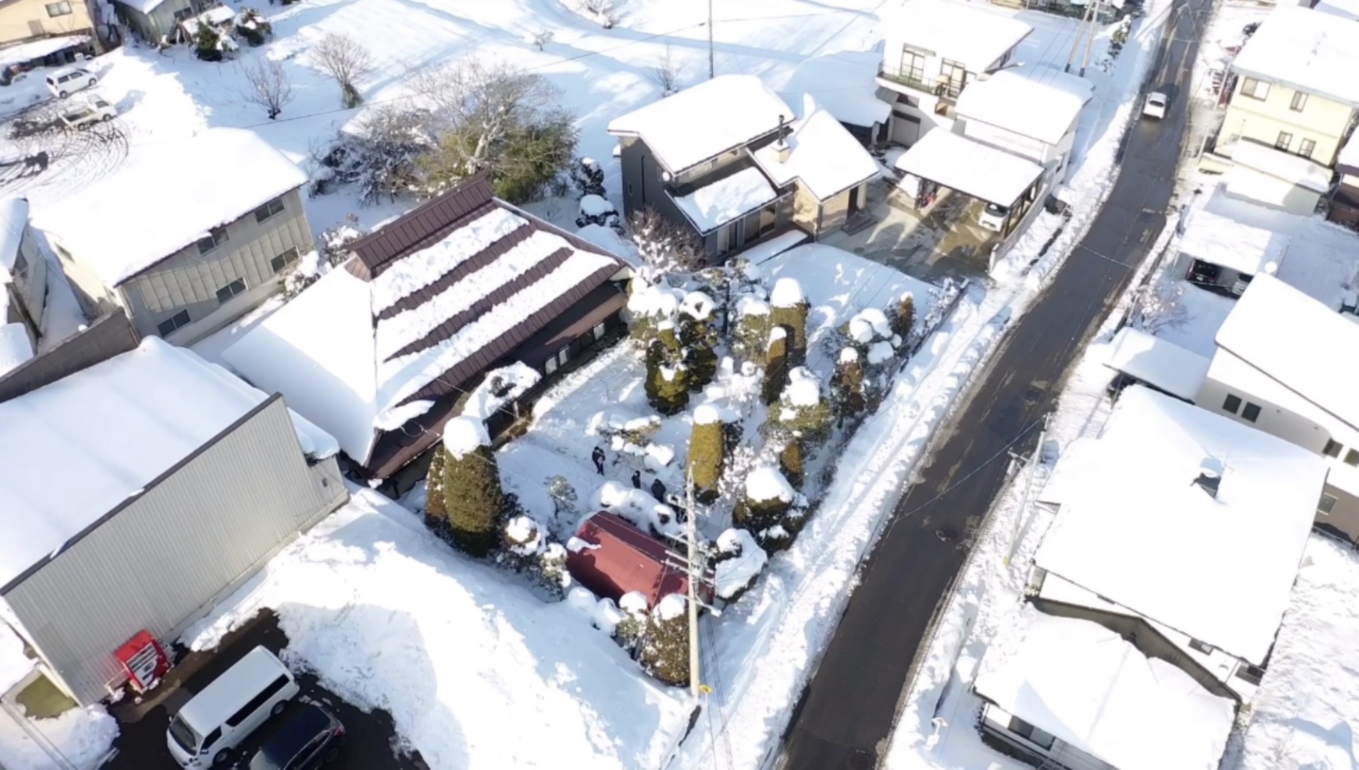 また、雪深くなった景色と共に、移住体験住宅をドローンで撮影しました。