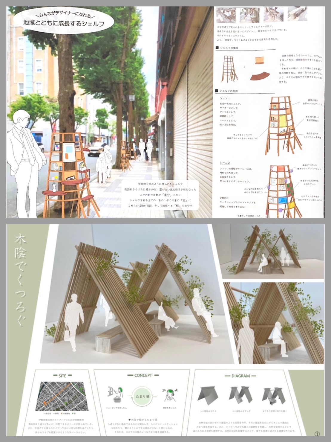 コンペ「ヨコハマストリートファニチャー」の20選に田島研究室から2作品が選ばれました! 2023年7月6日 コンペ「ヨコハマストリートファニチャー」にて、184作品中から一次審査推薦作品20選に田島研究室から2作品が選ばれました! 【推薦作品】 2枚目写真:大学院1年 伊藤聖 「みんながデザイナーになれる! 地域とともに成長するシェルフ」 3枚目写真:学部4年 片岡里緒、中澤果萌、前田優人 「木陰でくつろぐ」