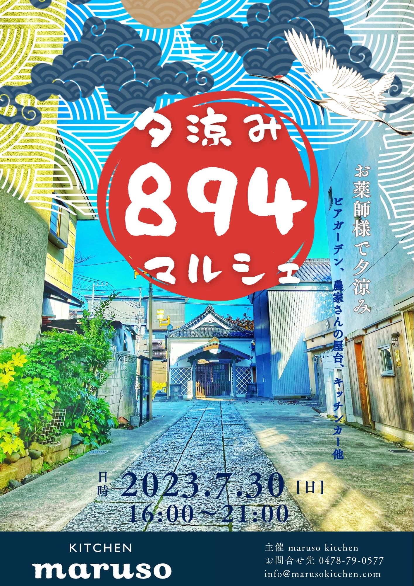 7/30(日)の16時より、千葉県の佐原 薬師堂境内にて「夕涼み894マルシェ」が開催されます。