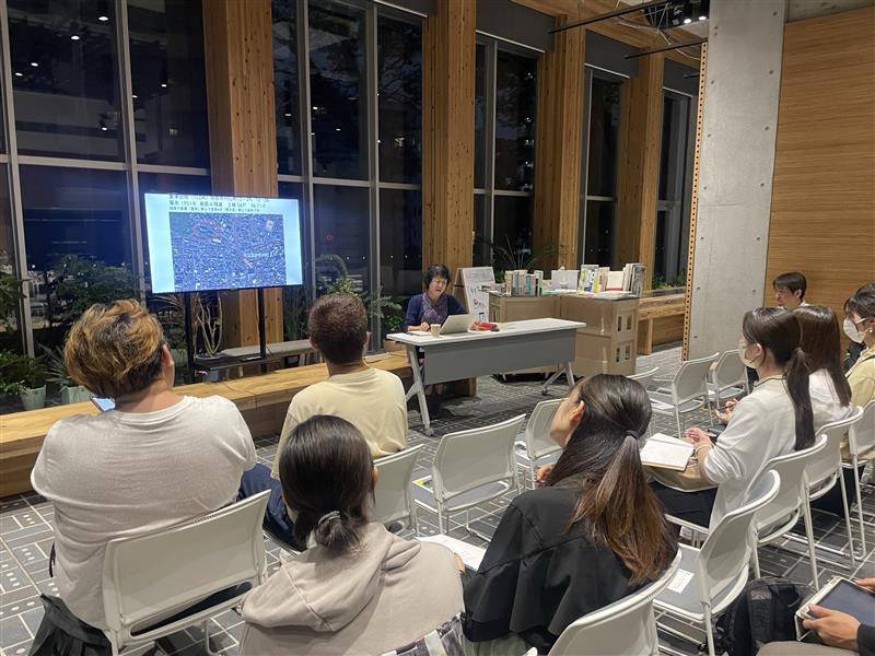 ゲストとして関西大学教授の岡絵理子さんに「団地×実験」というテーマで大阪府の団地にて居住実験として学生が住みながら自主改修した活用の実践的研究についてお話していただきました。
