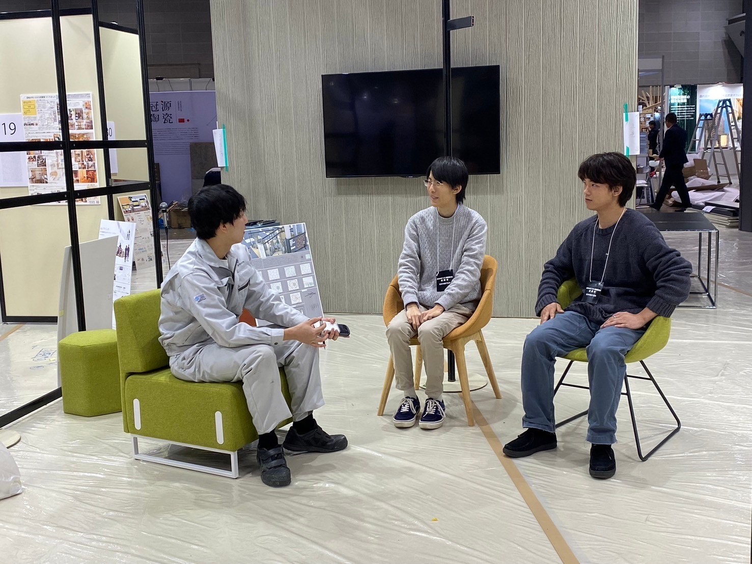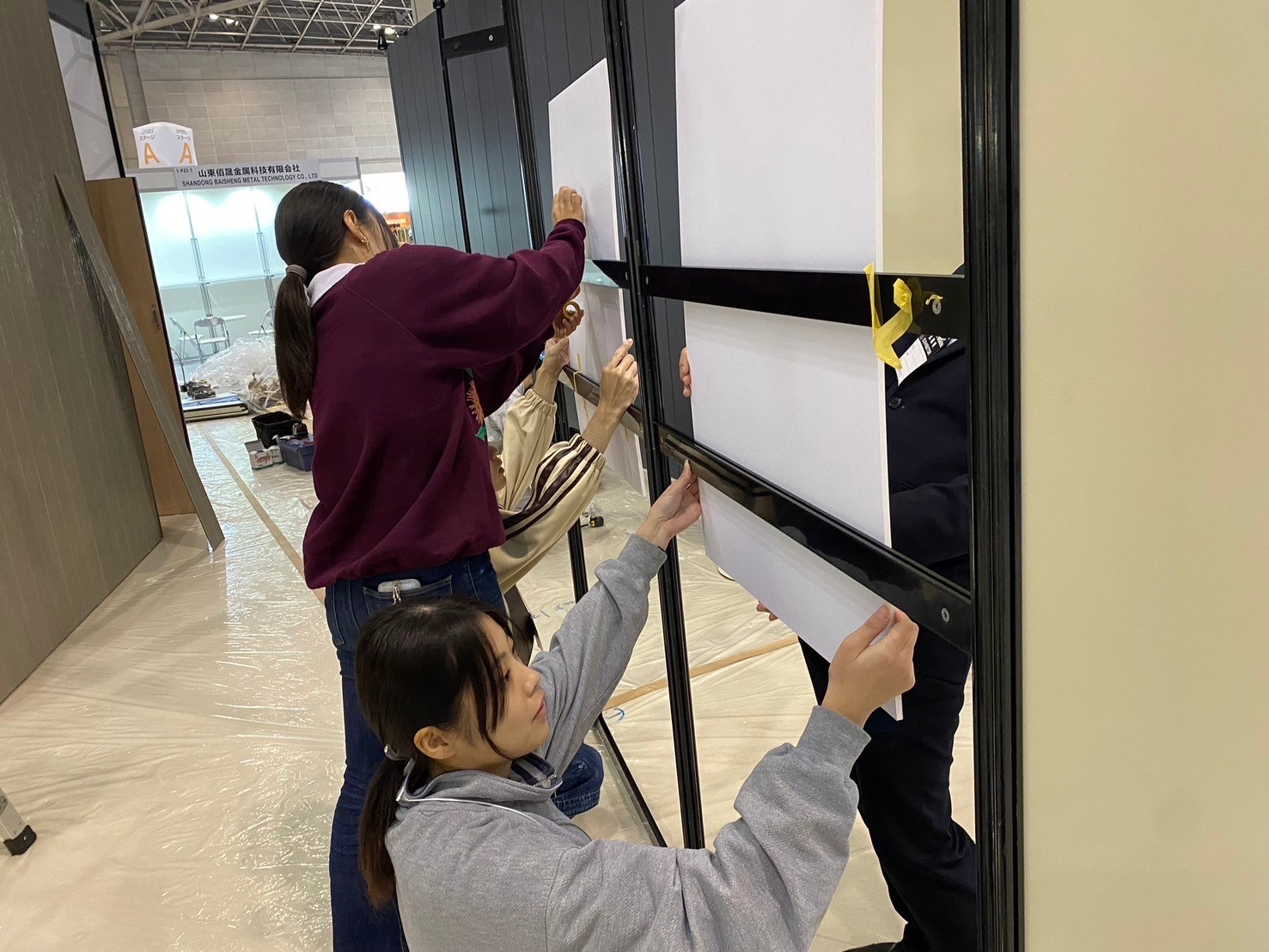 11/18.19の設営期間でブースの施工体験やパネル・家具の設置をしました。約半年間に及ぶ設計提案が、思い描いていた以上の形となり、とても感慨深かったです。