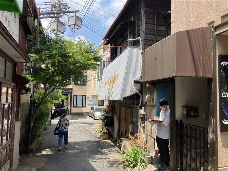 田島研究室では、昨年度に引き続き成田のまちに関する調査を進めています。第一回の成田調査の結果をもとに、7月1日、8日、15日の3日間、成田市花崎町にて空き家調査を行いました。空き家の可能性が高い建物、空き家の可能性がある建物、空き地・駐車場の実測を行い、写真とスケッチで記録しました。また、それらの活用方法を検討しました。