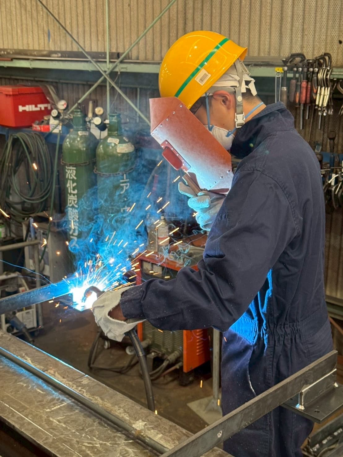 最初は溶接機の扱いに慣れず、なかなか思うようにいきませんでしたが、職人さんにアドバイスを頂きながら数を重ねるうちに少しずつ感覚をつかむことができ、楽しみながら作業を進めることができました。