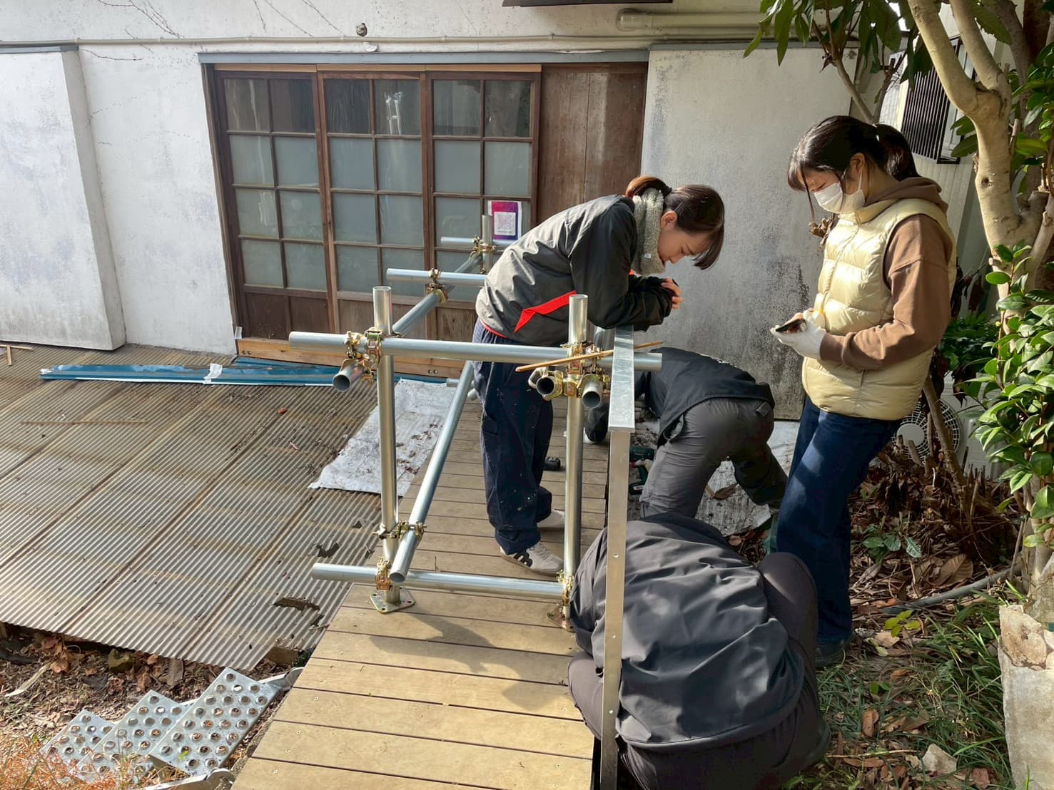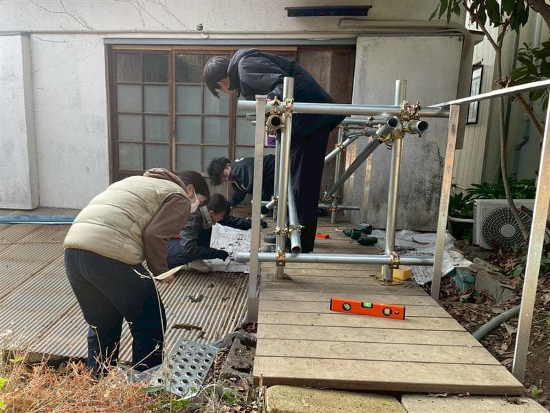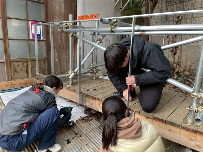 施工にあたっては、足場の組み立てや設置位置の墨出しなど、図面と実際の施工を丁寧に照らし合わせながら作業を行い、設計を現実の空間へと落とし込むプロセスを実践的に学ぶ機会となりました。